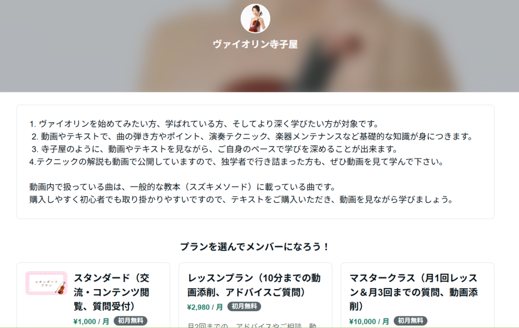 その中で、月額サービスの【サークル】というものがありまして、そこでヴァイオリンが学べるコンテンツを開講しています。